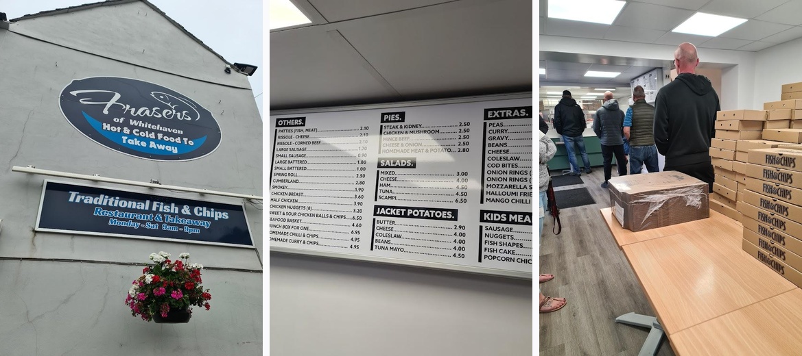 The attentive staff receive multiple mentions for their friendliness, making every visit pleasant. The casual atmosphere suits both solo diners and families, further enhancing the overall experience. Customers appreciate the consistently good quality of the food, especially the haddock and thick-cut chips, which many claim to be the best in Cumbria. Additionally, Fraser's offers an impressive tea selection, a cozy complement to their takeaway meals.